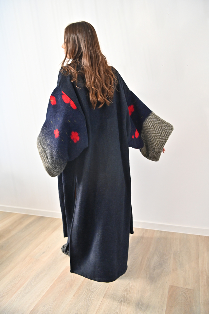 Des manteaux en laine aux lignes intemporelles, des textures naturelles et un savoir-faire artisanal qui sublime chaque détail.